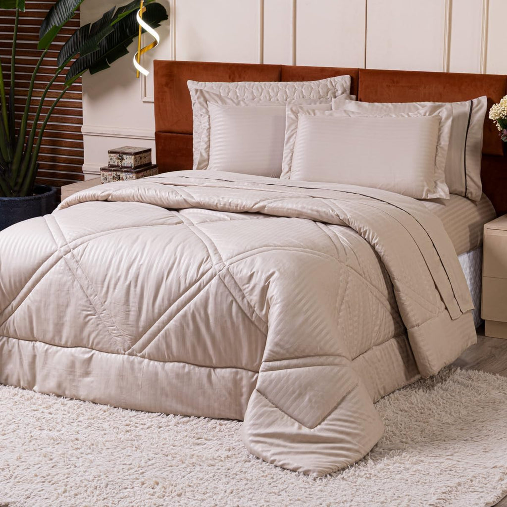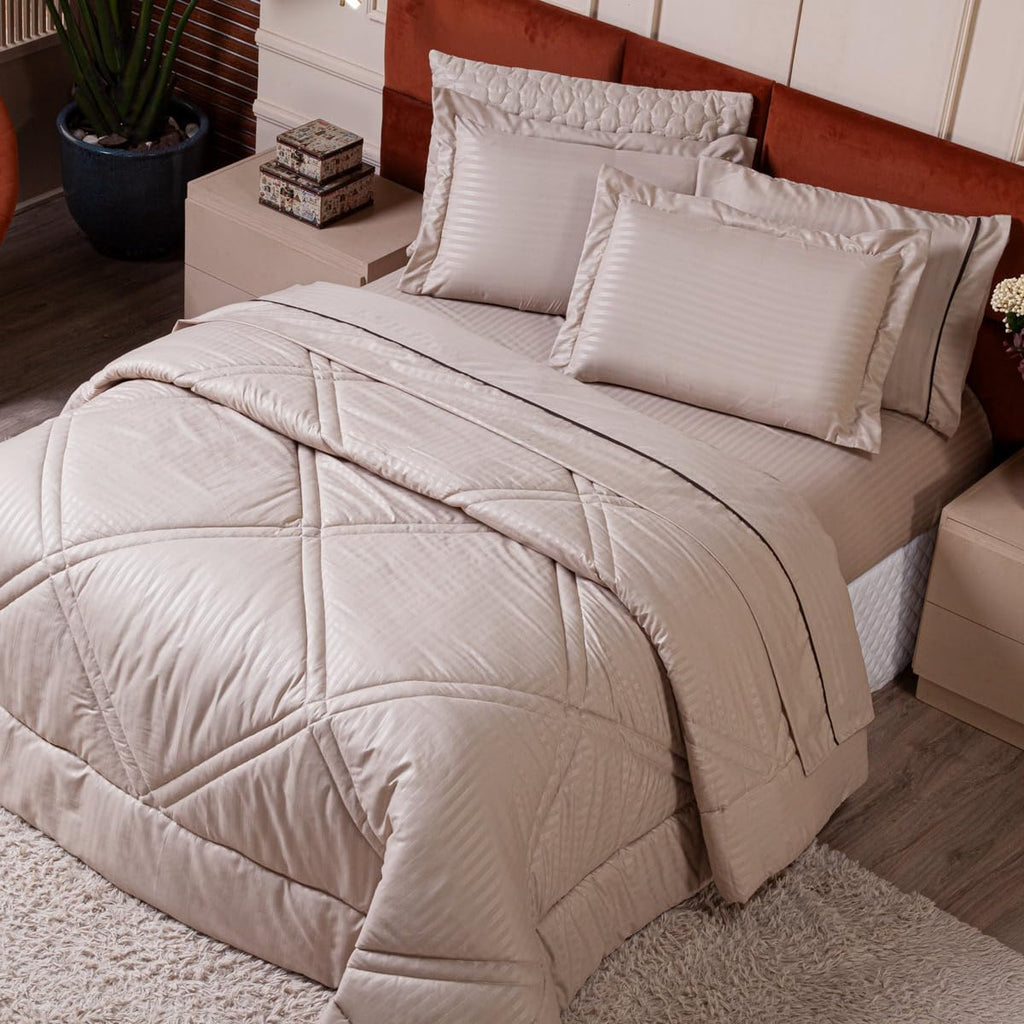 Kit Edredom Mônaco Percal 300 Fios – Toque Acetinado, Conforto e Sofisticação para o Seu Quarto