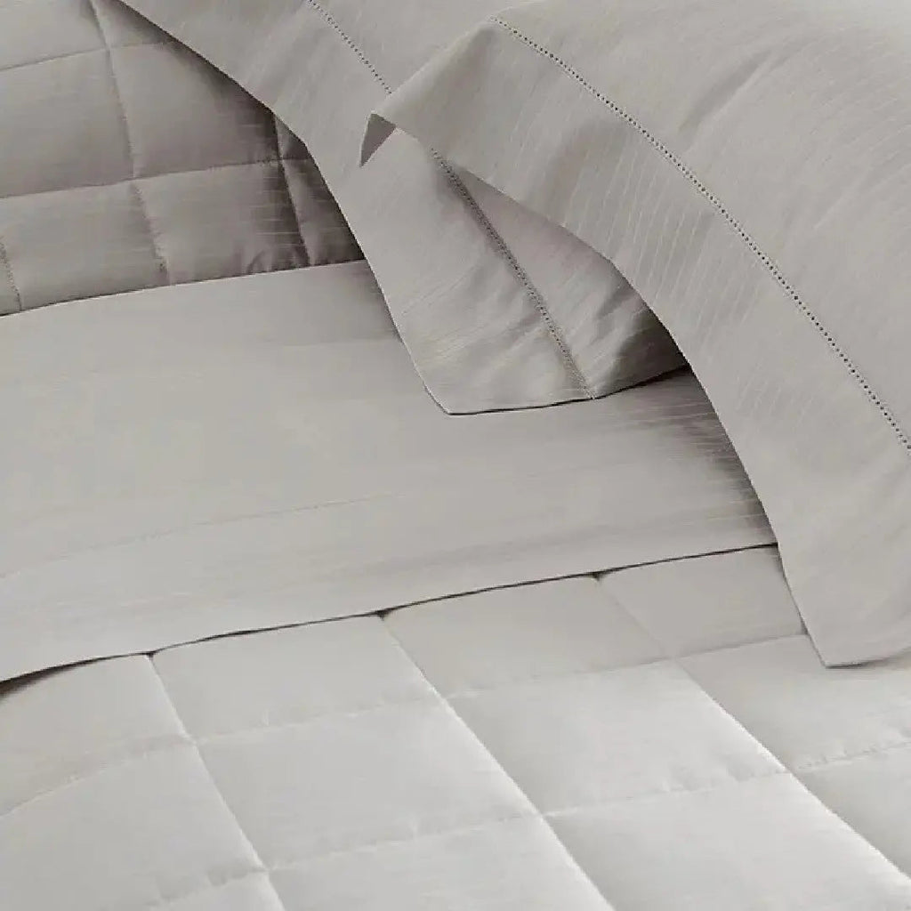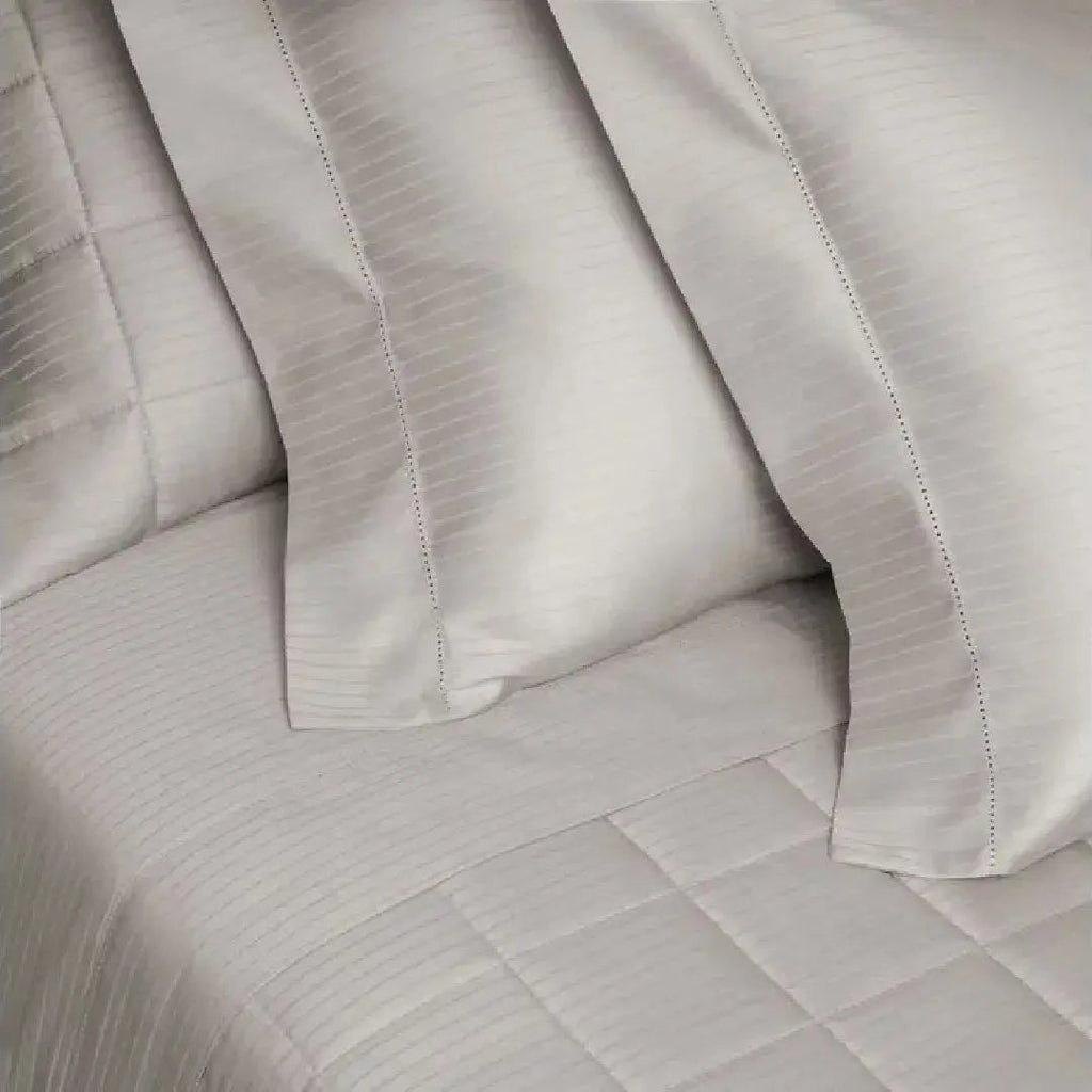 Transforme seu quarto com o luxo e a sofisticação do Kit Colcha Damask Stripes. Confeccionado em tecido adamascado cetim 300 fios, 100% algodão fio penteado, este kit oferece um toque acetinado, macio e com brilho sutil, perfeito para quem busca conforto e elegância.